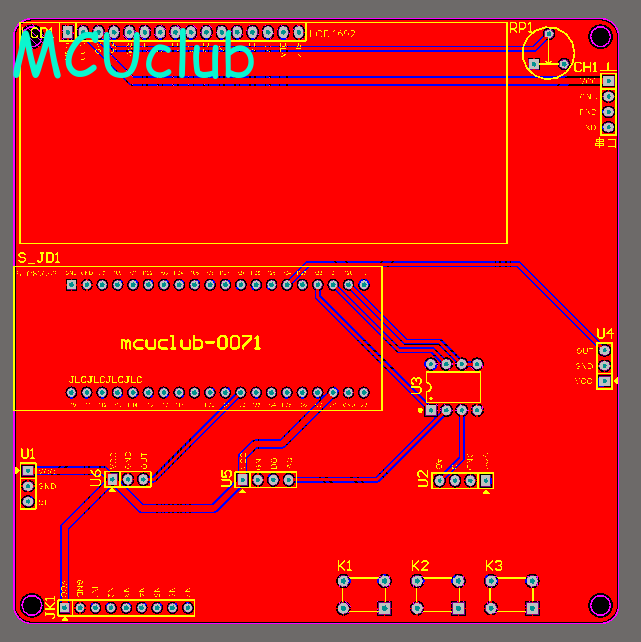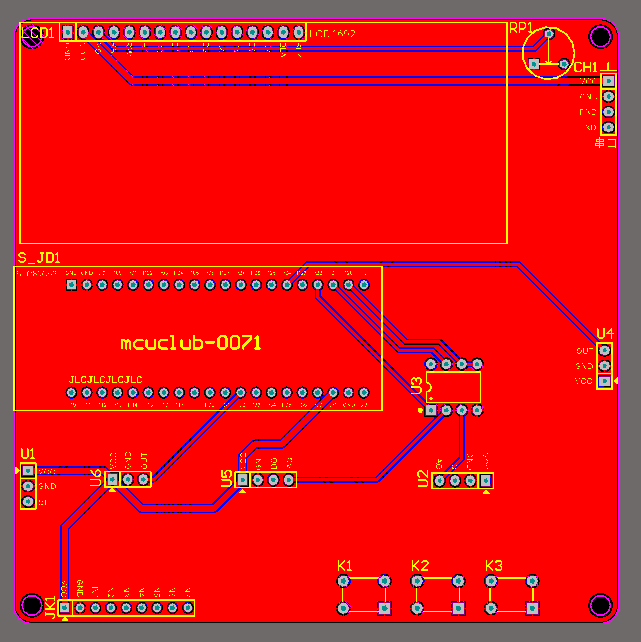 注意:PCB图中间有一个项目编号,隐藏在单片机底座下,插入单片机后不会看到。如果想截没有项目编号的PCB图,可在PCB源文件中点击删除。另外,如果想在实物PCB板上加自己的信息(比如日期、学号、姓名等),可联系客服。