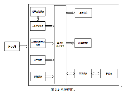 2、通过光照检测模块检测光照值,通过D203S人体热释电检测是否有人,如果有人,且光照值低于设置最小值,则自动打开照明灯