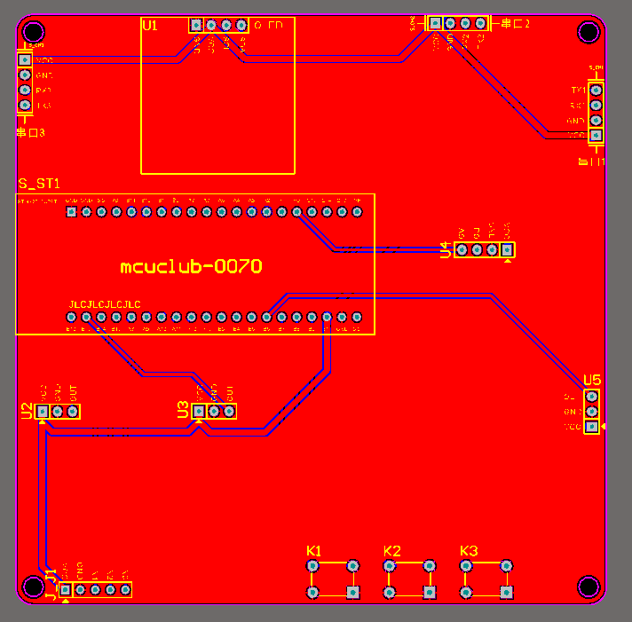 底板:底板在嘉立创进行打板,为绿色PCB板,两层板,厚度1.2,上下覆铜接地。元器件基本上为插针式,个别降压芯片会使用贴片式。