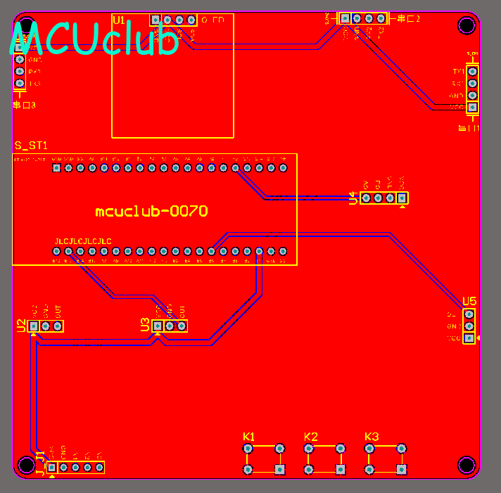 注意:PCB图中间有一个项目编号,隐藏在单片机底座下,插入单片机后不会看到。如果想截没有项目编号的PCB图,可在PCB源文件中点击删除。另外,如果想在实物PCB板上加自己的信息(比如日期、学号、姓名等),可联系客服。