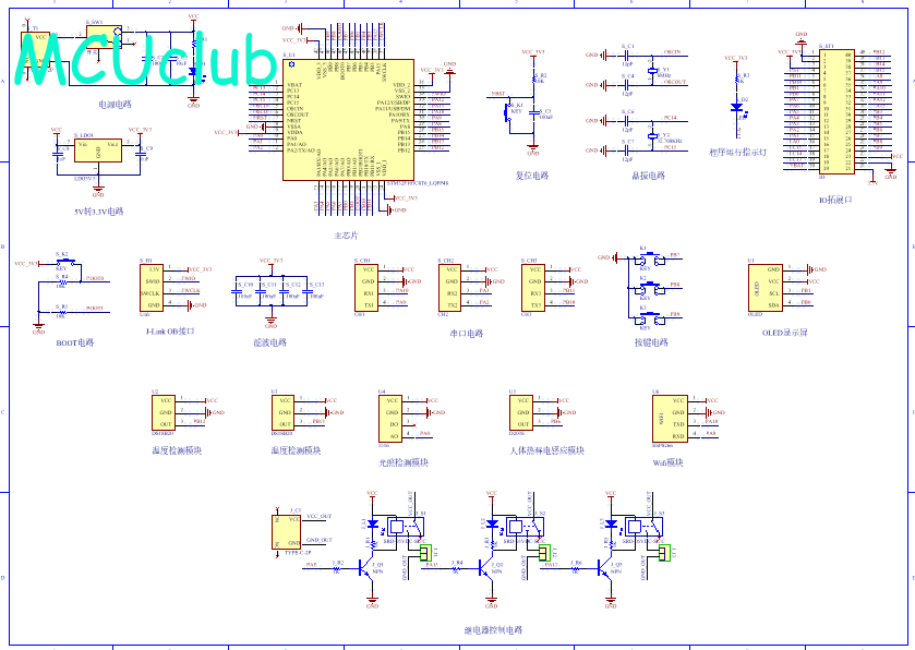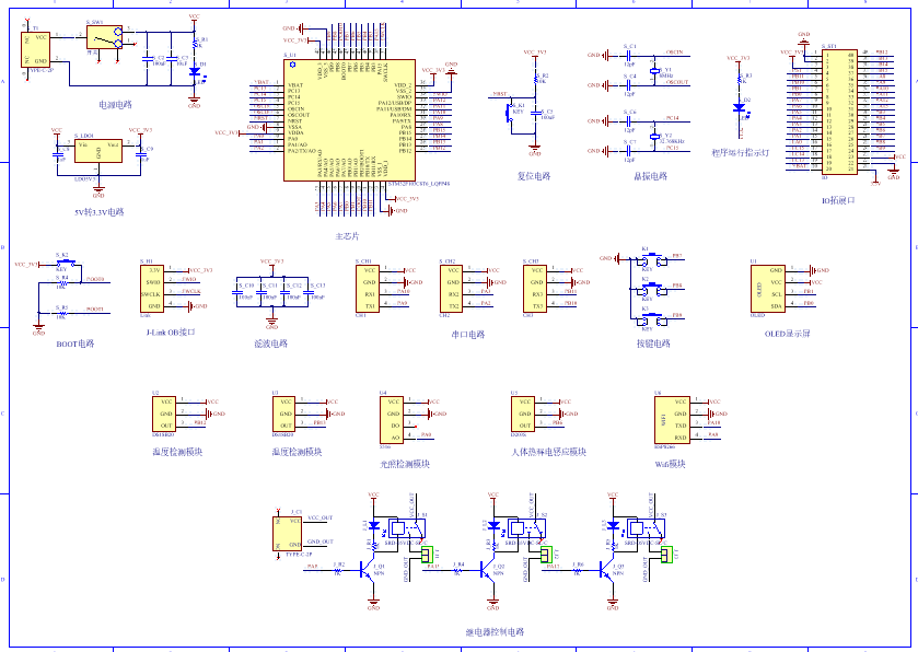 PCB图是由原理图导出,封装很大一部分都是作者自己绘制,不提供封装库,只提供连接好的源文件,可以直接在嘉立创进行打板。两层板,上下覆铜接地。