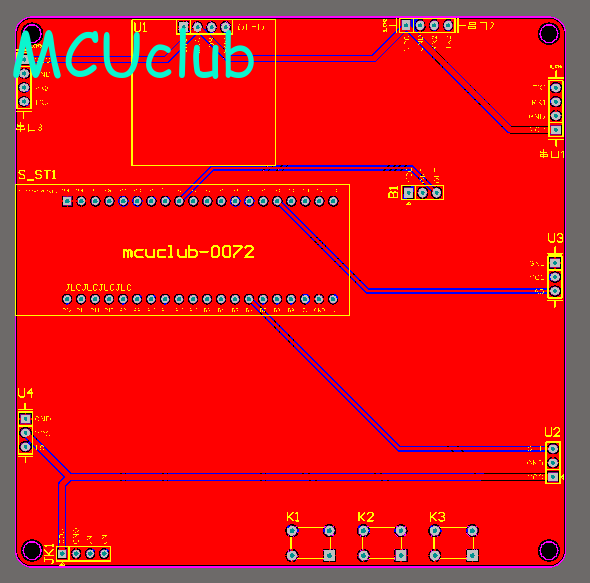 注意:PCB图中间有一个项目编号,隐藏在单片机底座下,插入单片机后不会看到。如果想截没有项目编号的PCB图,可在PCB源文件中点击删除。另外,如果想在实物PCB板上加自己的信息(比如日期、学号、姓名等),可联系客服。