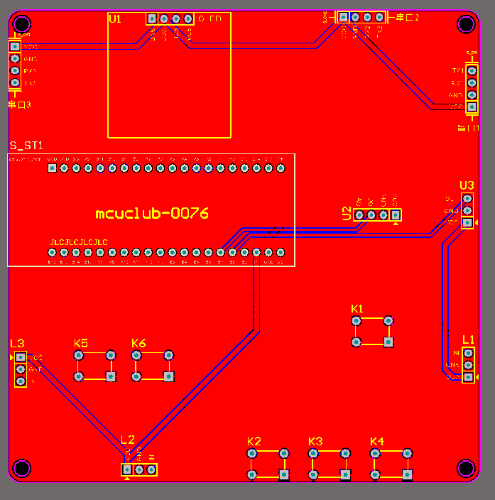 注意:PCB图中间有一个项目编号,隐藏在单片机底座下,插入单片机后不会看到。如果想截没有项目编号的PCB图,可在PCB源文件中点击删除。另外,如果想在实物PCB板上加自己的信息(比如日期、学号、姓名等),可联系客服。