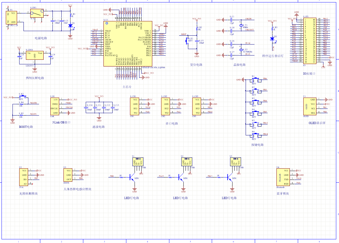 注意:原理图只是画出了模块的引脚图,而并不是模块的内部结构原理图