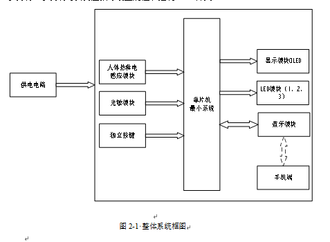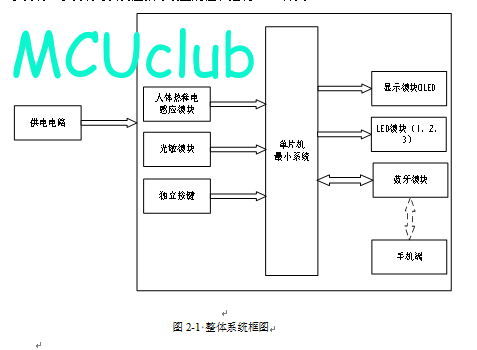 3、卧室灯:通过按键可设定卧室亮灯时间,时间到达后,自动熄灭,通过显示屏显示计时时间,可通过按键开关灯
