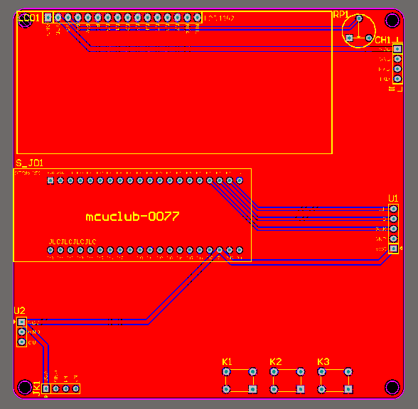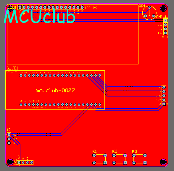 注意:PCB图中间有一个项目编号,隐藏在单片机底座下,插入单片机后不会看到。如果想截没有项目编号的PCB图,可在PCB源文件中点击删除。另外,如果想在实物PCB板上加自己的信息(比如日期、学号、姓名等),可联系客服。