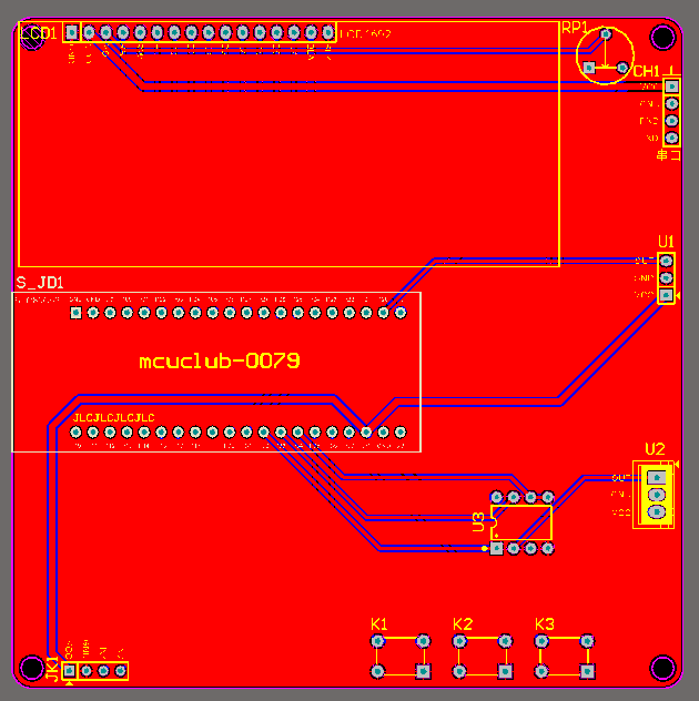 注意:PCB图中间有一个项目编号,隐藏在单片机底座下,插入单片机后不会看到。如果想截没有项目编号的PCB图,可在PCB源文件中点击删除。另外,如果想在实物PCB板上加自己的信息(比如日期、学号、姓名等),可联系客服。