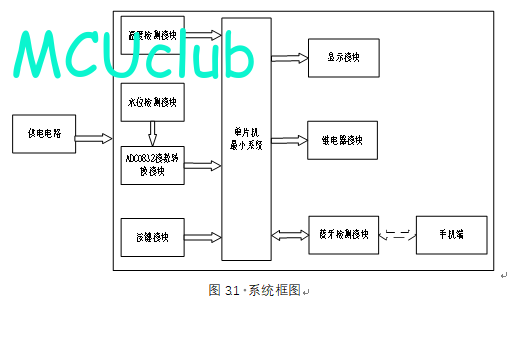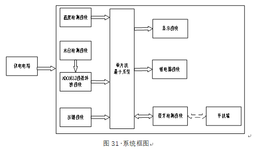 2、通过水位检测模块检测水位,水位低于最低值,进行加水,直到加到最高值