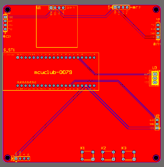 注意:PCB图中间有一个项目编号,隐藏在单片机底座下,插入单片机后不会看到。如果想截没有项目编号的PCB图,可在PCB源文件中点击删除。另外,如果想在实物PCB板上加自己的信息(比如日期、学号、姓名等),可联系客服。