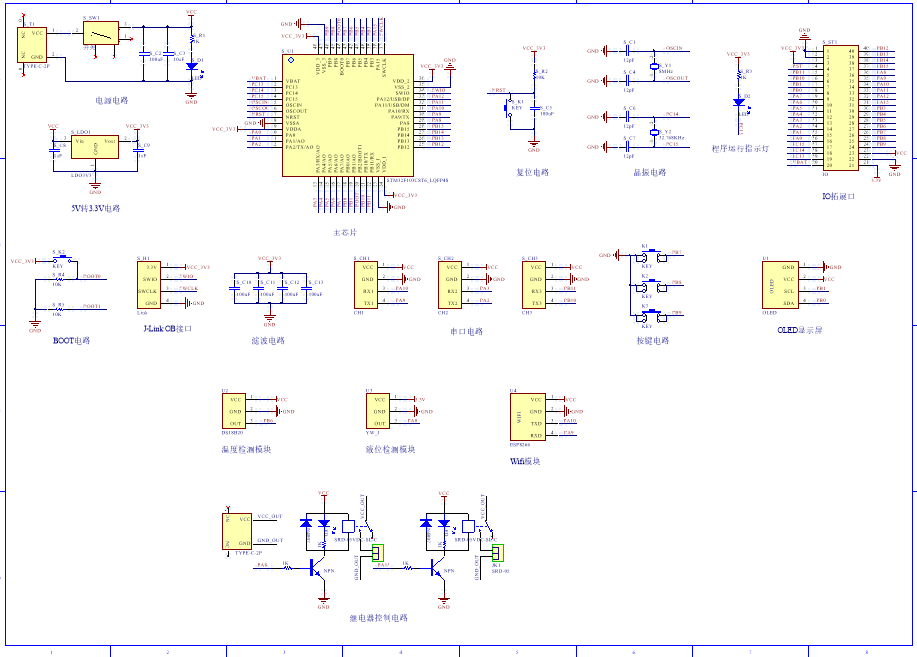 PCB图是由原理图导出,封装很大一部分都是作者自己绘制,不提供封装库,只提供连接好的源文件,可以直接在嘉立创进行打板。两层板,上下覆铜接地。