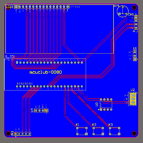 PCB图是由原理图导出,封装很大一部分都是作者自己绘制,不提供封装库,只提供连接好的源文件,可以直接在嘉立创进行打板。两层板,上下覆铜接地。