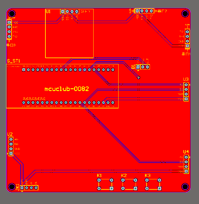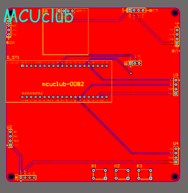 注意:PCB图中间有一个项目编号,隐藏在单片机底座下,插入单片机后不会看到。如果想截没有项目编号的PCB图,可在PCB源文件中点击删除。另外,如果想在实物PCB板上加自己的信息(比如日期、学号、姓名等),可联系客服。