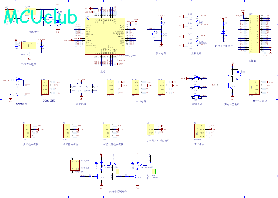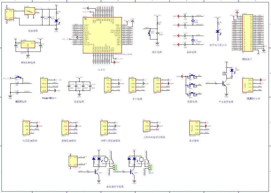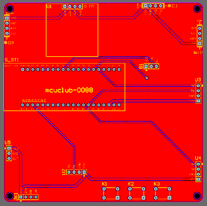 PCB图是由原理图导出,封装很大一部分都是作者自己绘制,不提供封装库,只提供连接好的源文件,可以直接在嘉立创进行打板。两层板,上下覆铜接地。