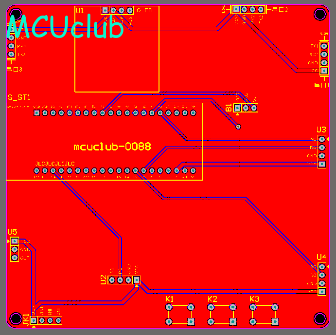 注意:PCB图中间有一个项目编号,隐藏在单片机底座下,插入单片机后不会看到。如果想截没有项目编号的PCB图,可在PCB源文件中点击删除。另外,如果想在实物PCB板上加自己的信息(比如日期、学号、姓名等),可联系客服。