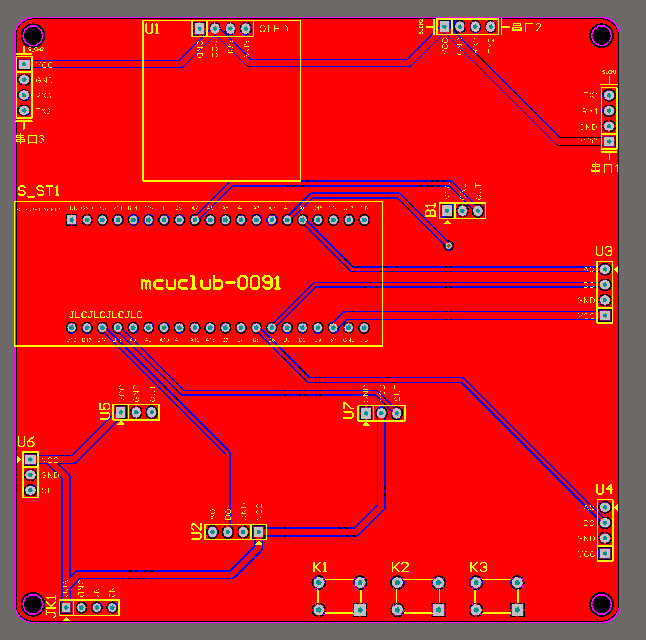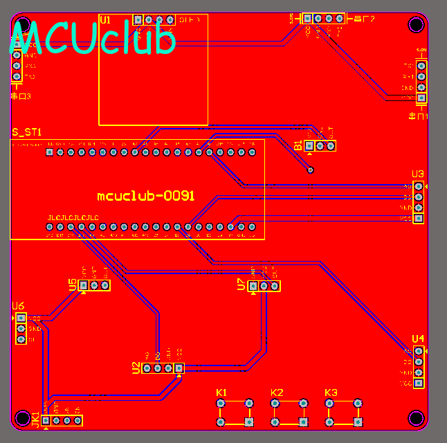 注意:PCB图中间有一个项目编号,隐藏在单片机底座下,插入单片机后不会看到。如果想截没有项目编号的PCB图,可在PCB源文件中点击删除。另外,如果想在实物PCB板上加自己的信息(比如日期、学号、姓名等),可联系客服。