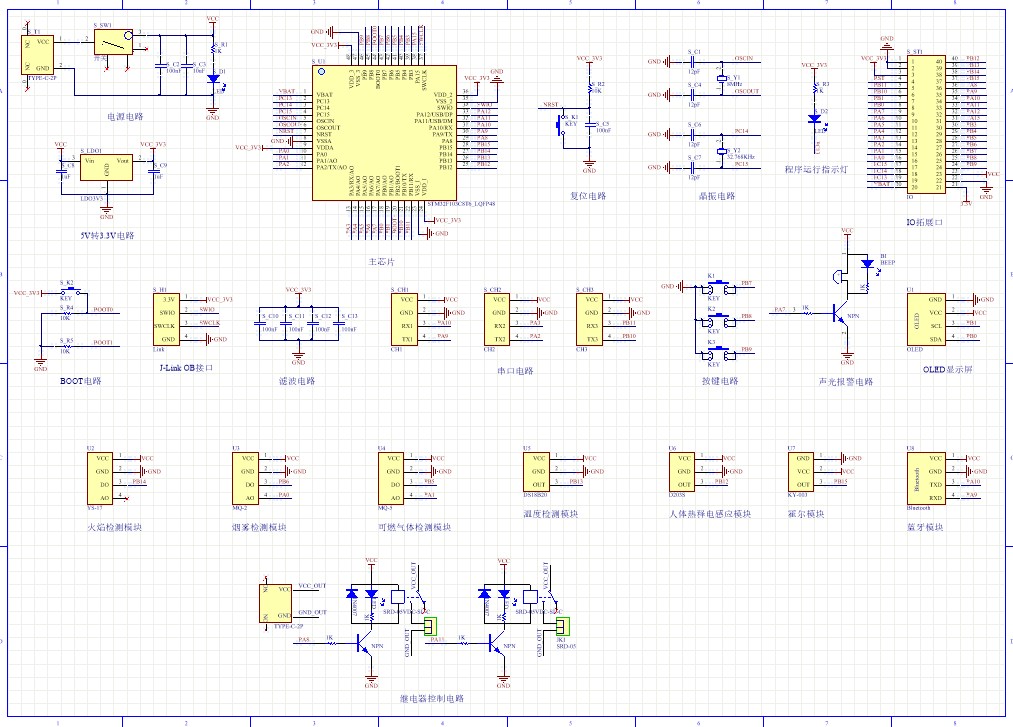 PCB图是由原理图导出,封装很大一部分都是作者自己绘制,不提供封装库,只提供连接好的源文件,可以直接在嘉立创进行打板。两层板,上下覆铜接地。