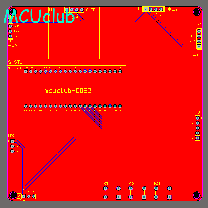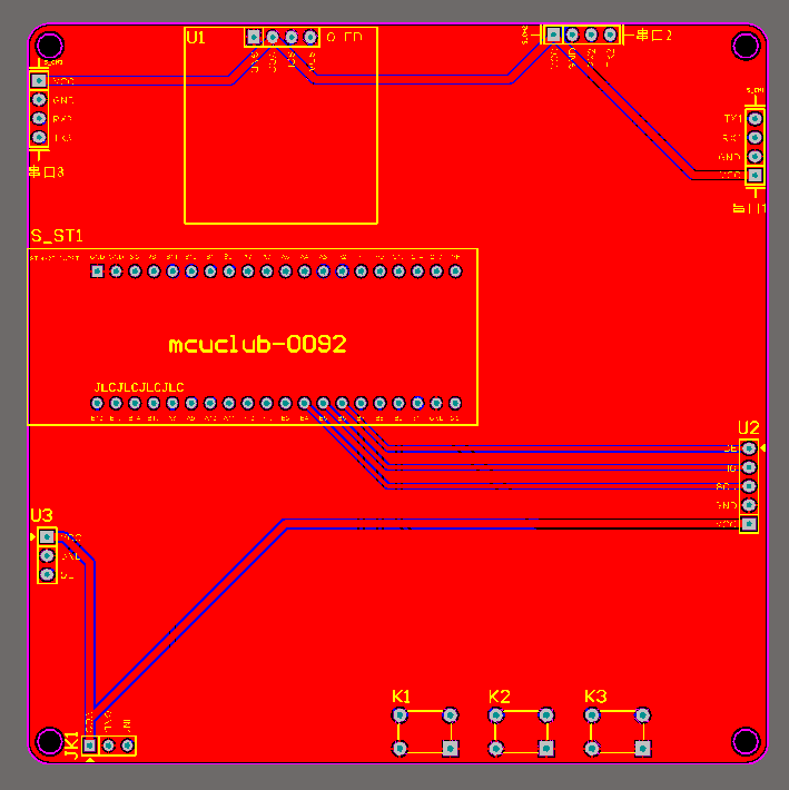 注意:PCB图中间有一个项目编号,隐藏在单片机底座下,插入单片机后不会看到。如果想截没有项目编号的PCB图,可在PCB源文件中点击删除。另外,如果想在实物PCB板上加自己的信息(比如日期、学号、姓名等),可联系客服。