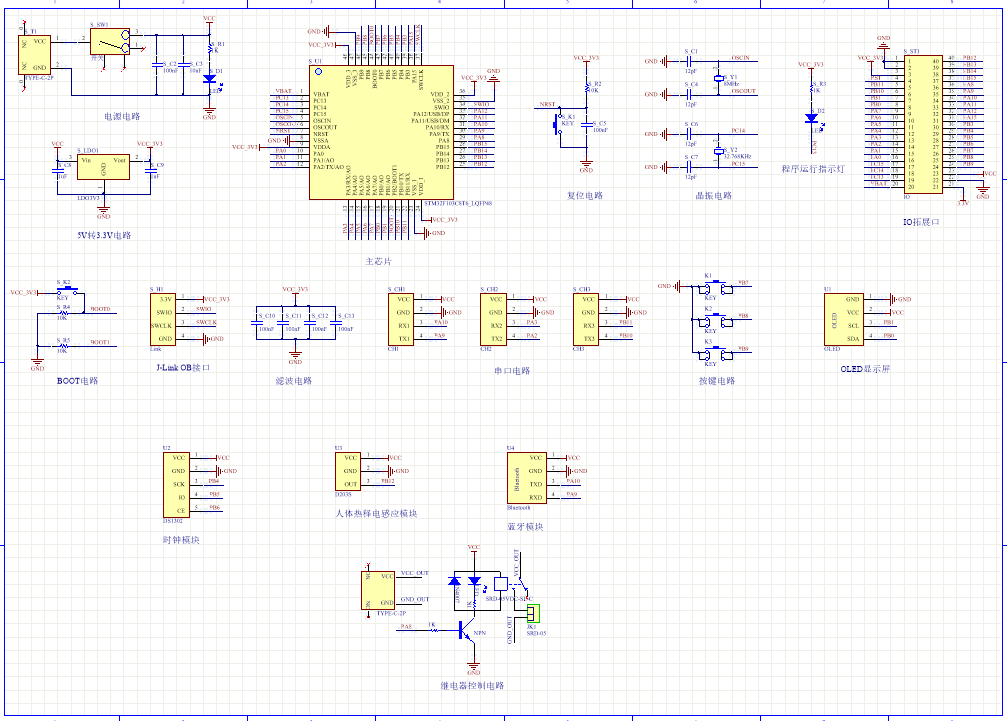 PCB图是由原理图导出,封装很大一部分都是作者自己绘制,不提供封装库,只提供连接好的源文件,可以直接在嘉立创进行打板。两层板,上下覆铜接地。