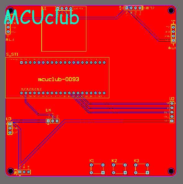 注意:PCB图中间有一个项目编号,隐藏在单片机底座下,插入单片机后不会看到。如果想截没有项目编号的PCB图,可在PCB源文件中点击删除。另外,如果想在实物PCB板上加自己的信息(比如日期、学号、姓名等),可联系客服。