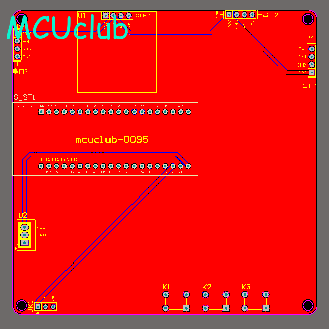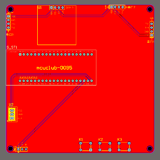 注意:PCB图中间有一个项目编号,隐藏在单片机底座下,插入单片机后不会看到。如果想截没有项目编号的PCB图,可在PCB源文件中点击删除。另外,如果想在实物PCB板上加自己的信息(比如日期、学号、姓名等),可联系客服。