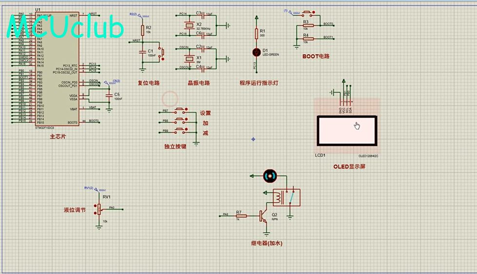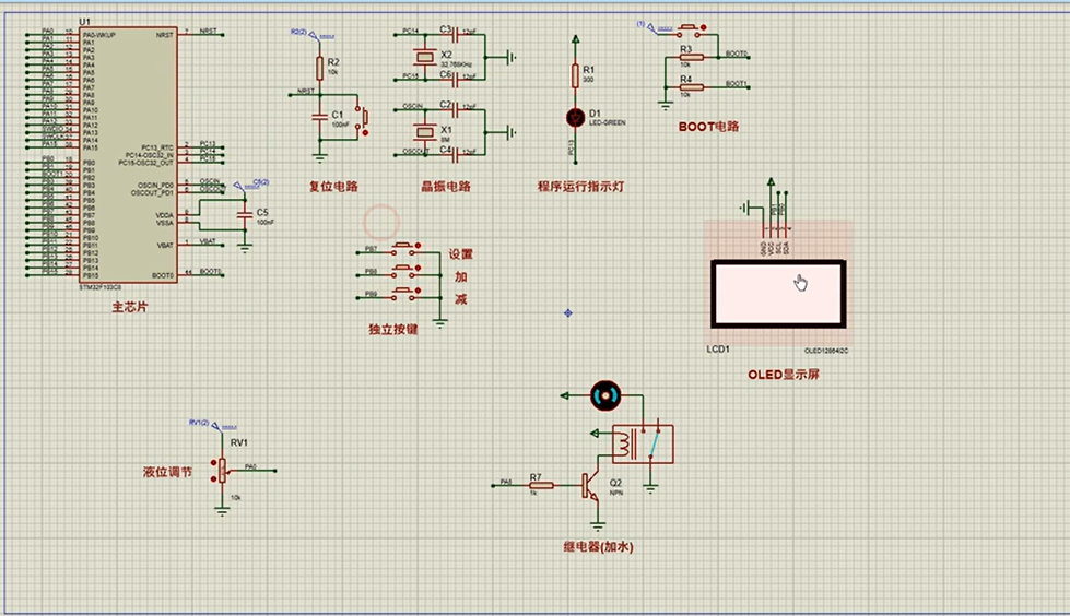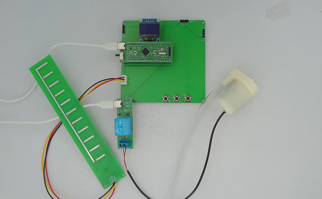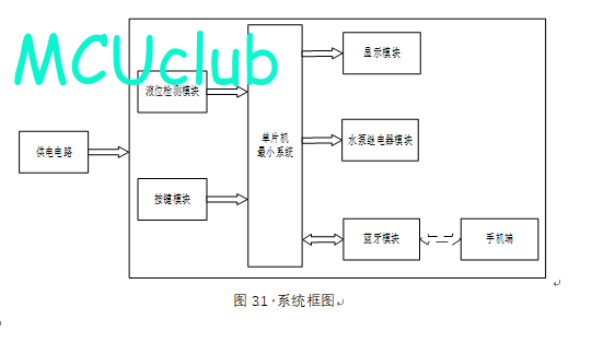 1、通过液位检测模块检测液位值,当液位值小于设置最小值时进行加水,直到大于设置最大值停止加水
