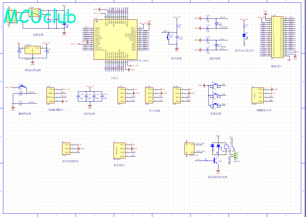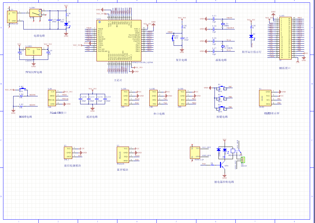 PCB图是由原理图导出,封装很大一部分都是作者自己绘制,不提供封装库,只提供连接好的源文件,可以直接在嘉立创进行打板。两层板,上下覆铜接地。