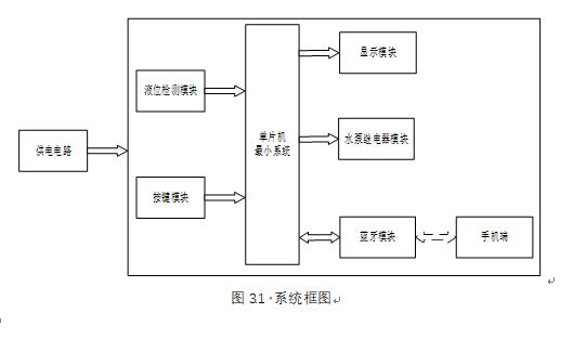 扩展功能:通过蓝牙模块将测量数据发送到手机端,手机端可设置各阈值,另外,手机端可远程控制加水