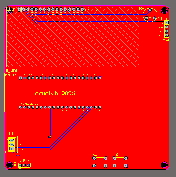 PCB图是由原理图导出,封装很大一部分都是作者自己绘制,不提供封装库,只提供连接好的源文件,可以直接在嘉立创进行打板。两层板,上下覆铜接地。