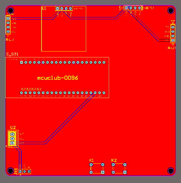 底板:底板在嘉立创进行打板,为绿色PCB板,两层板,厚度1.2,上下覆铜接地。元器件基本上为插针式,个别降压芯片会使用贴片式。