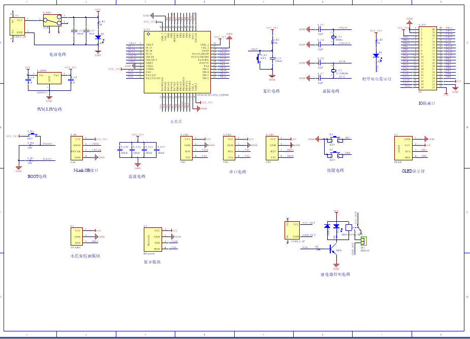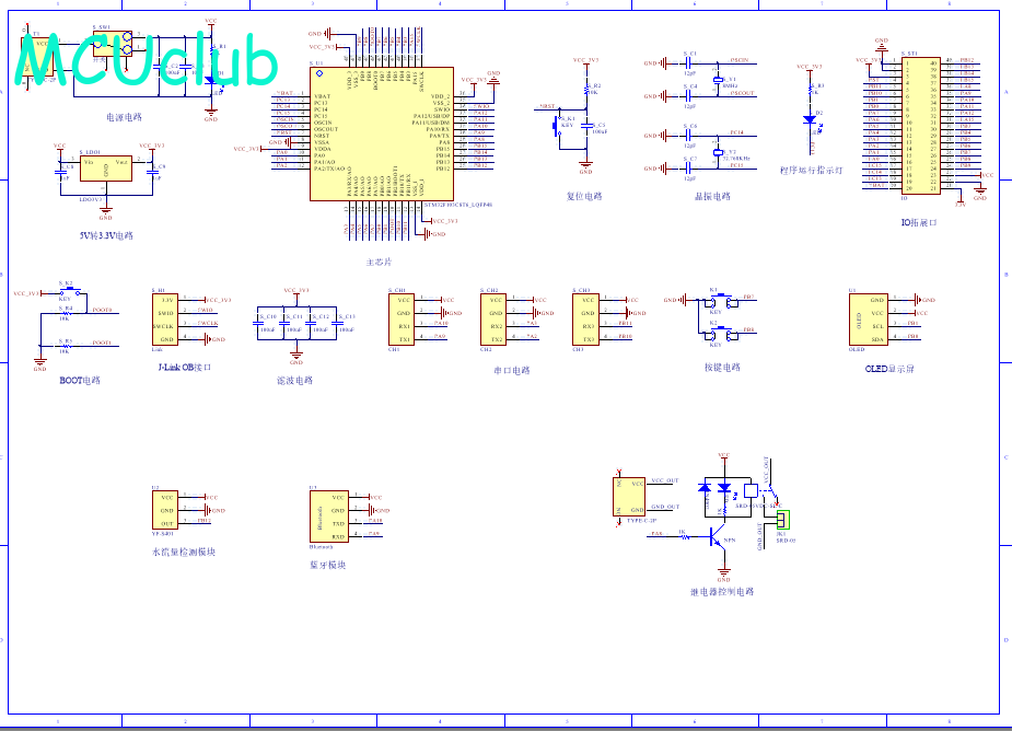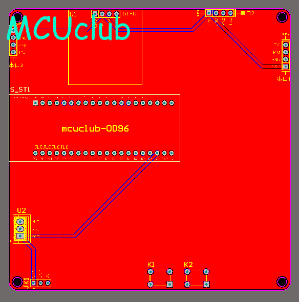 PCB图是由原理图导出,封装很大一部分都是作者自己绘制,不提供封装库,只提供连接好的源文件,可以直接在嘉立创进行打板。两层板,上下覆铜接地。