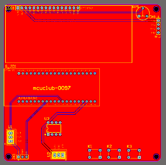 PCB图是由原理图导出,封装很大一部分都是作者自己绘制,不提供封装库,只提供连接好的源文件,可以直接在嘉立创进行打板。两层板,上下覆铜接地。