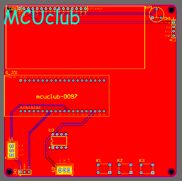 注意:PCB图中间有一个项目编号,隐藏在单片机底座下,插入单片机后不会看到。如果想截没有项目编号的PCB图,可在PCB源文件中点击删除。另外,如果想在实物PCB板上加自己的信息(比如日期、学号、姓名等),可联系客服。