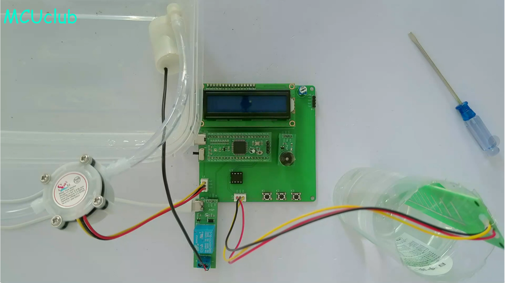 1、通过继电器控制水泵,将水抽出经过流速传感器测出流速,并得出总水流量