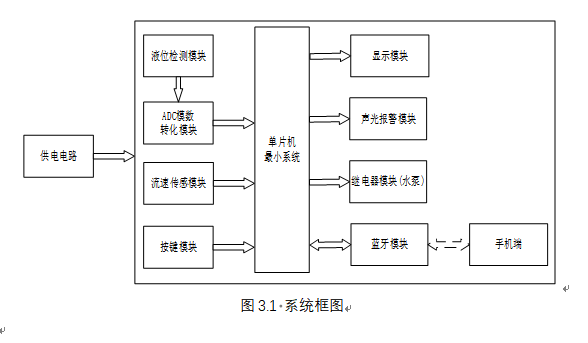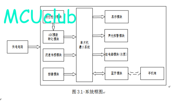 扩展功能:通过蓝牙模块将测量数据发送到手机端,手机端可设置各阈值,另外,手机端可远程控制抽水