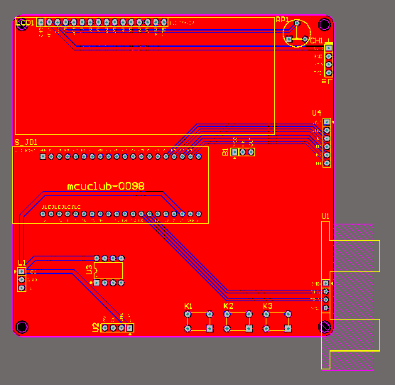 PCB图是由原理图导出,封装很大一部分都是作者自己绘制,不提供封装库,只提供连接好的源文件,可以直接在嘉立创进行打板。两层板,上下覆铜接地。
