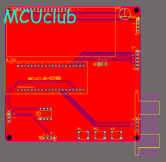 注意:PCB图中间有一个项目编号,隐藏在单片机底座下,插入单片机后不会看到。如果想截没有项目编号的PCB图,可在PCB源文件中点击删除。另外,如果想在实物PCB板上加自己的信息(比如日期、学号、姓名等),可联系客服。