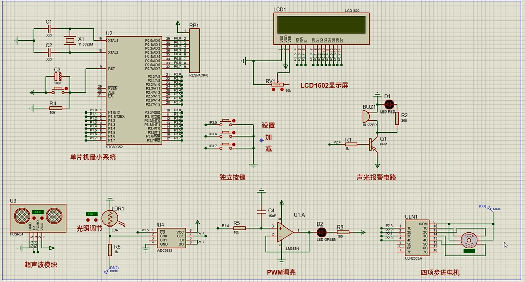 注意:部分实物元器件仿真中没有,仿真中会用其他工作原理相似的元件代替,这样可能导致实物程序和仿真程序不一样
