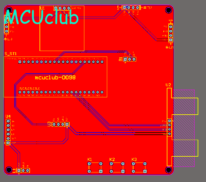 注意:PCB图中间有一个项目编号,隐藏在单片机底座下,插入单片机后不会看到。如果想截没有项目编号的PCB图,可在PCB源文件中点击删除。另外,如果想在实物PCB板上加自己的信息(比如日期、学号、姓名等),可联系客服。