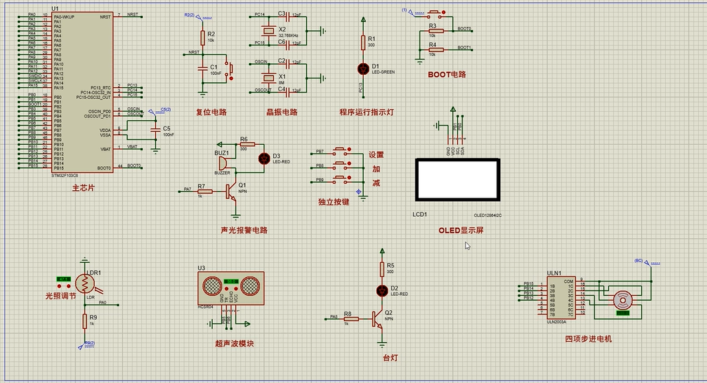 1、通过按键可以调节书桌高度(步进电机模拟)