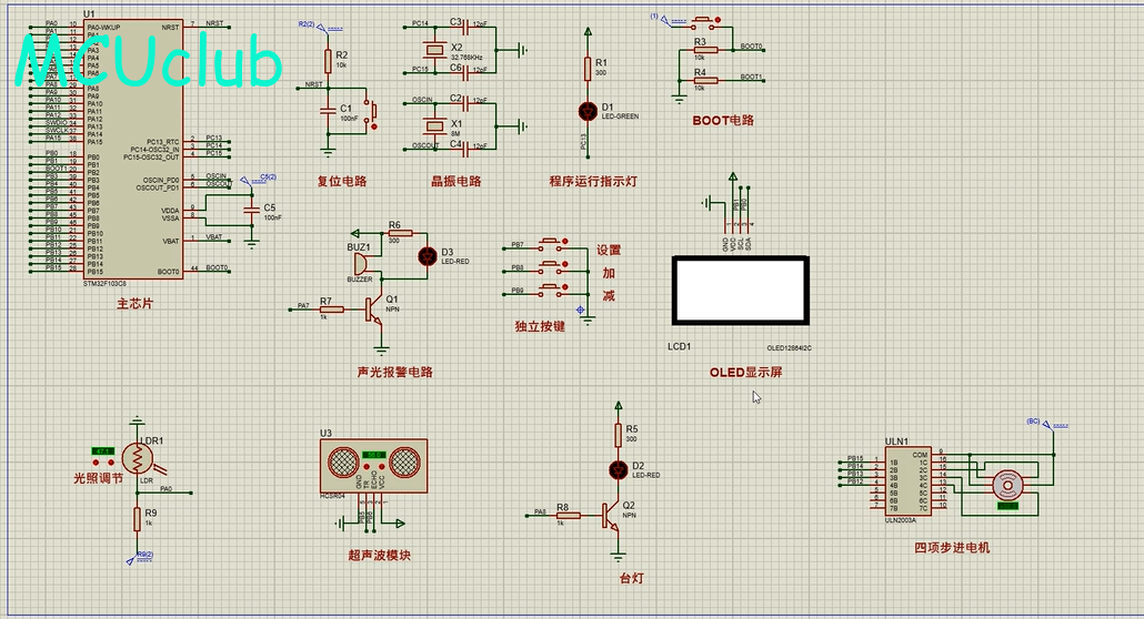 注意:部分实物元器件仿真中没有,仿真中会用其他工作原理相似的元件代替,这样可能导致实物程序和仿真程序不一样