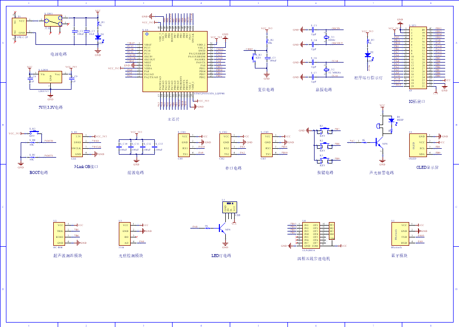 PCB图是由原理图导出,封装很大一部分都是作者自己绘制,不提供封装库,只提供连接好的源文件,可以直接在嘉立创进行打板。两层板,上下覆铜接地。