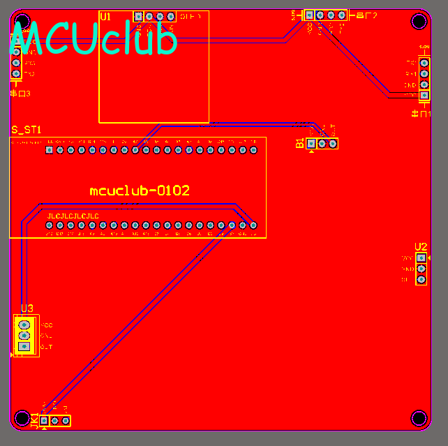 注意:PCB图中间有一个项目编号,隐藏在单片机底座下,插入单片机后不会看到。如果想截没有项目编号的PCB图,可在PCB源文件中点击删除。另外,如果想在实物PCB板上加自己的信息(比如日期、学号、姓名等),可联系客服。