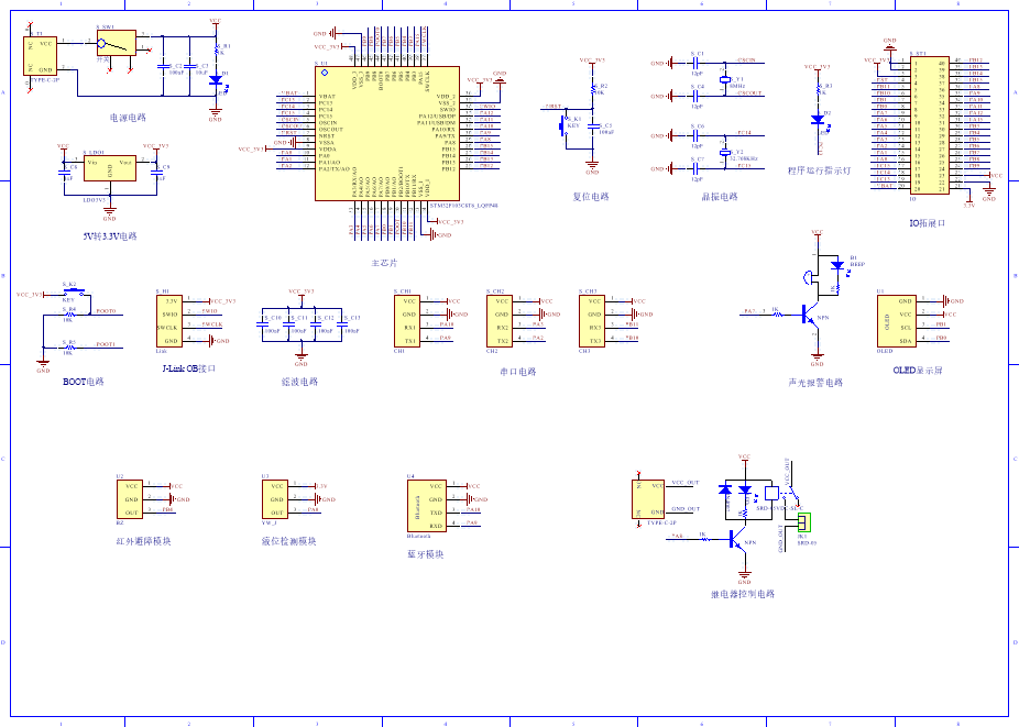 PCB图是由原理图导出,封装很大一部分都是作者自己绘制,不提供封装库,只提供连接好的源文件,可以直接在嘉立创进行打板。两层板,上下覆铜接地。