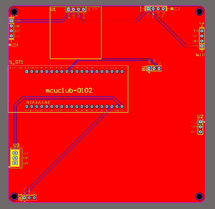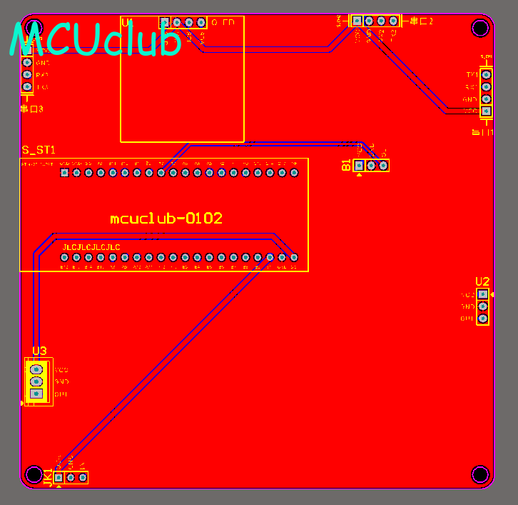 底板:底板在嘉立创进行打板,为绿色PCB板,两层板,厚度1.2,上下覆铜接地。元器件基本上为插针式,个别降压芯片会使用贴片式。