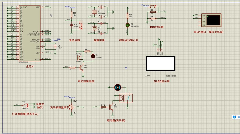 注意:部分实物元器件仿真中没有,仿真中会用其他工作原理相似的元件代替,这样可能导致实物程序和仿真程序不一样