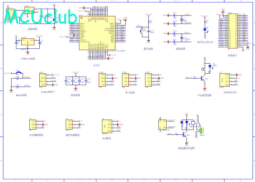 PCB图是由原理图导出,封装很大一部分都是作者自己绘制,不提供封装库,只提供连接好的源文件,可以直接在嘉立创进行打板。两层板,上下覆铜接地。