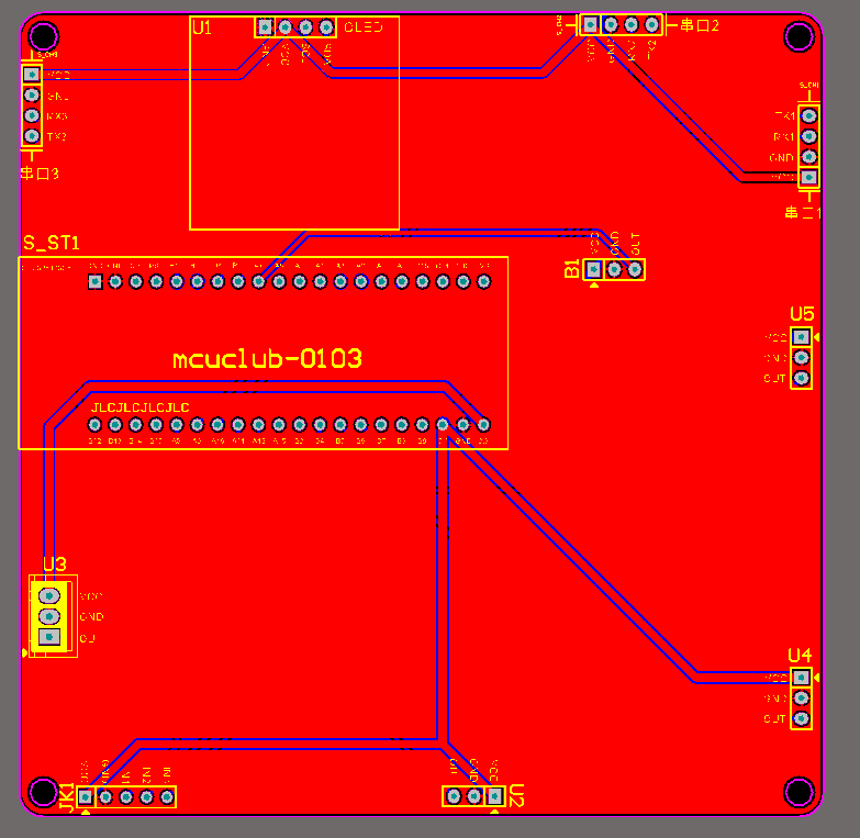 底板:底板在嘉立创进行打板,为绿色PCB板,两层板,厚度1.2,上下覆铜接地。元器件基本上为插针式,个别降压芯片会使用贴片式。