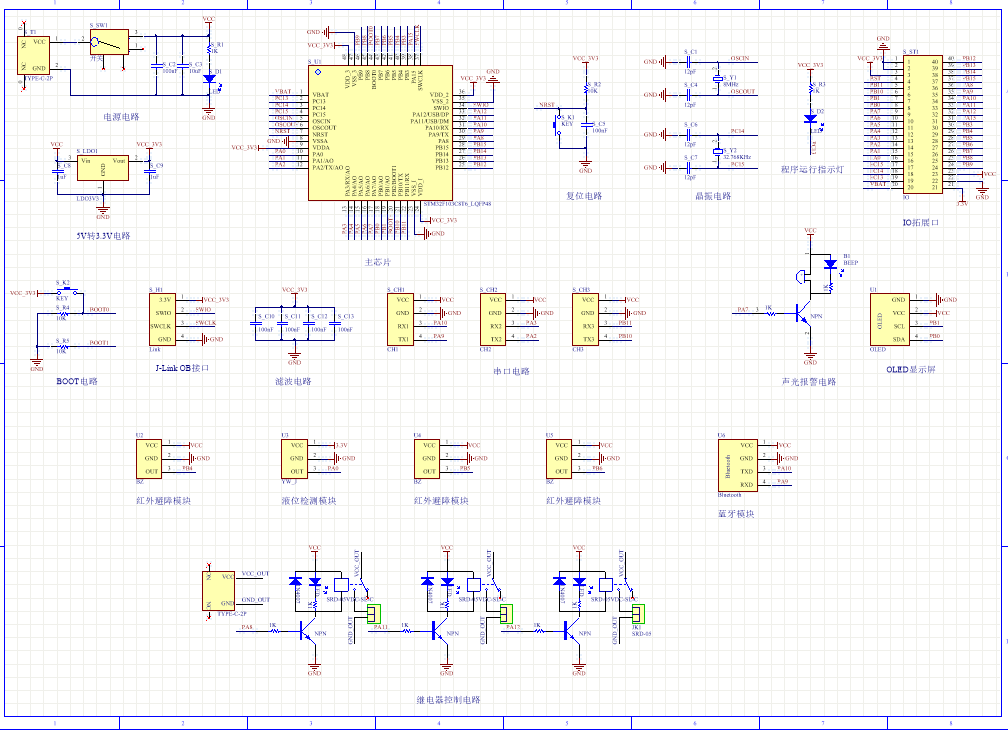 PCB图是由原理图导出,封装很大一部分都是作者自己绘制,不提供封装库,只提供连接好的源文件,可以直接在嘉立创进行打板。两层板,上下覆铜接地。