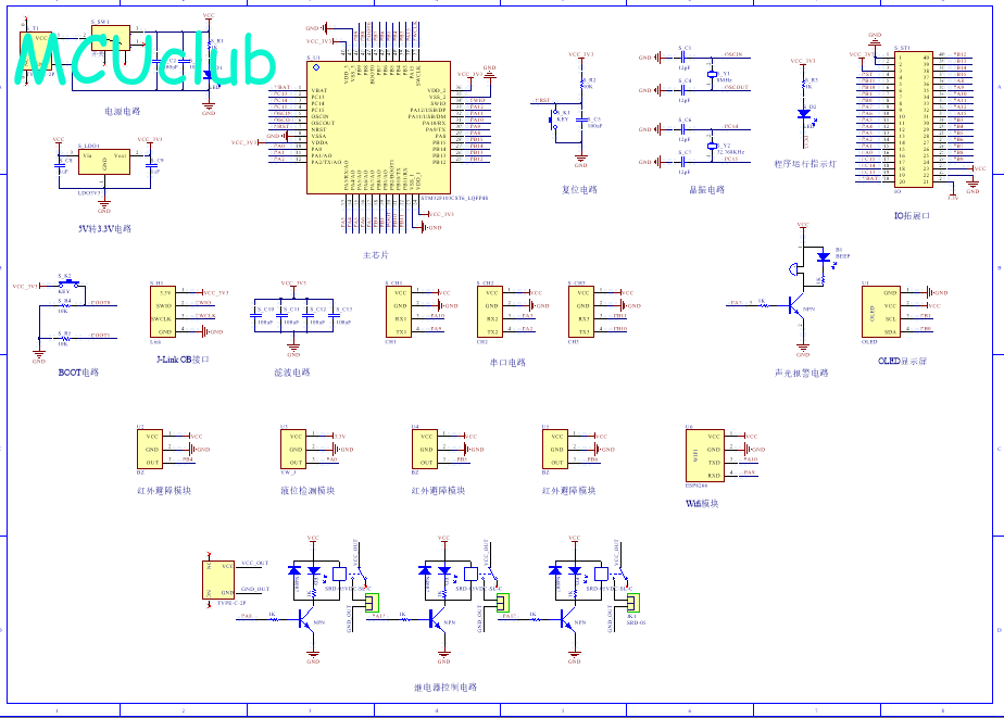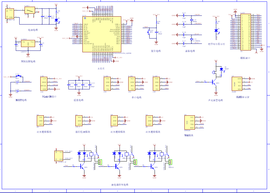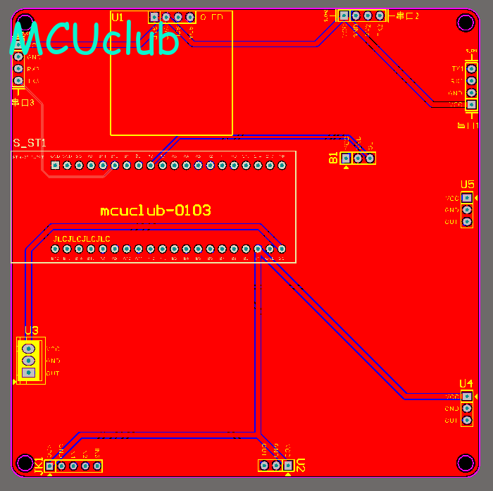 PCB图是由原理图导出,封装很大一部分都是作者自己绘制,不提供封装库,只提供连接好的源文件,可以直接在嘉立创进行打板。两层板,上下覆铜接地。