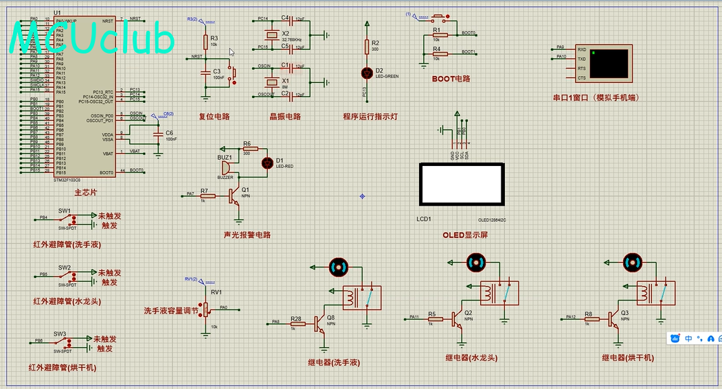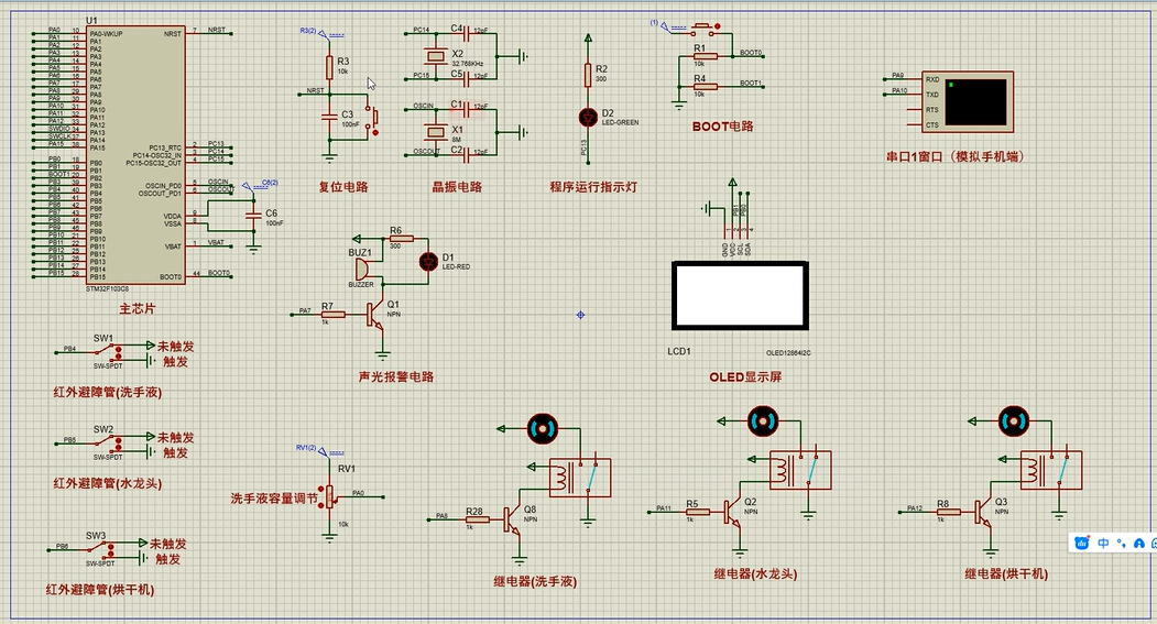 注意:部分实物元器件仿真中没有,仿真中会用其他工作原理相似的元件代替,这样可能导致实物程序和仿真程序不一样